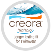 Elastano com alta resistência ao cloro (Creora Highclo), aumenta a vida útil e mantém a elasticidade das peças por muito mais tempo.